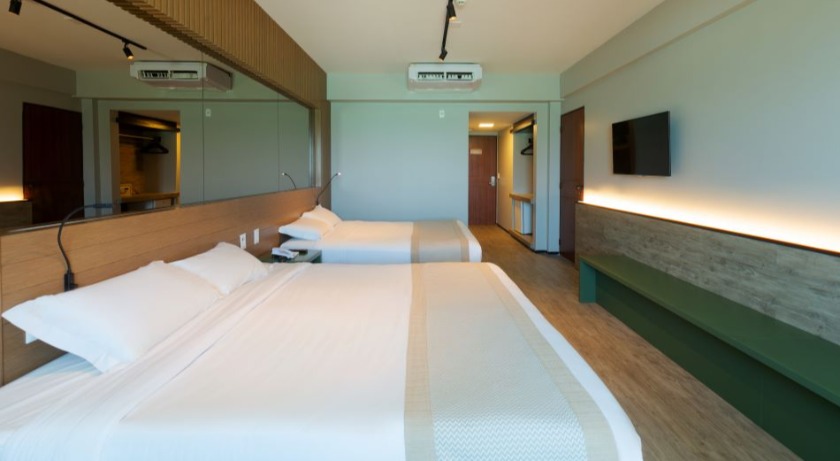 Localizados no quarto andar, os apartamentos Premium Plus possuem enxoval diferenciado com travesseiro e pillow-top de plumas de ganso, diferenciando-se do Premium Floor. Apartamento com vista frente mar e 37m². Capacidade Máxima 4 pessoas.