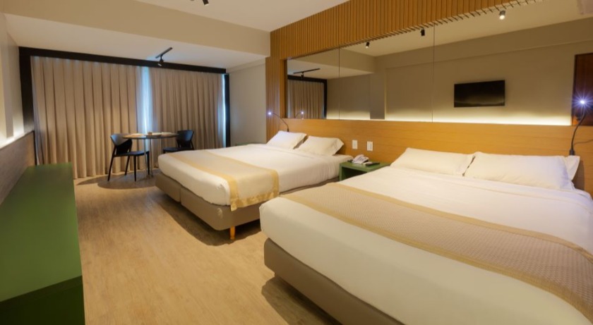 Localizados no quarto andar, os apartamentos Premium Plus possuem enxoval diferenciado com travesseiro e pillow-top de plumas de ganso, diferenciando-se do Premium Floor. Apartamento com vista frente mar e 37m². Capacidade Máxima 4 pessoas.