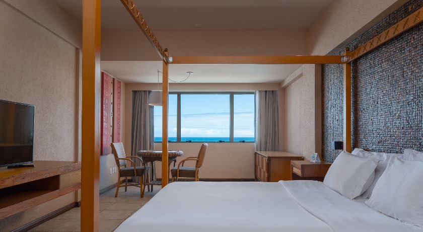 Visando oferecer para o mercado corporativo uma opção de alto padrão e luxo, a suíte possui 120m², duas portas de entrada com hall, sala com dois sofás, uma sala de reunião para até 12 pessoas, closet, banheiro com ofurô japonês de madeira e dois chuveiros, cama king size, adega de vinhos climatizada e uma varanda com uma bela vista para o mar.